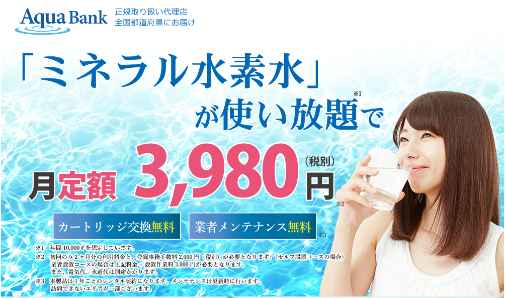 | ミネラル水素水 | 0円 | 12L=1.2円 |